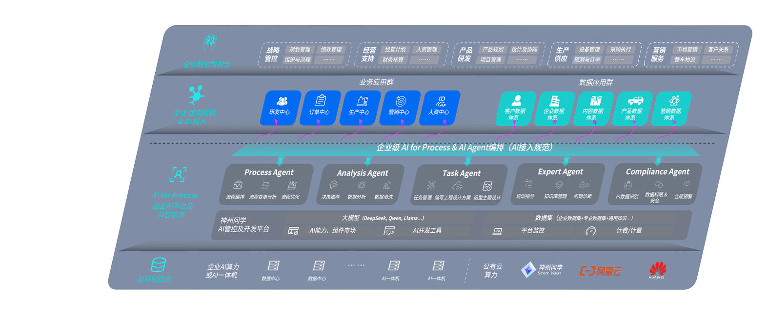 端到端的一站式AI工作空间深度融合了从企业战略规划到日常经营的全流程业务板块,,,定向解决车企内部领域多、、部门多、、、、链条长、、、场景碎片化等难题,,,支持车企快速构建以AI为核心的生产力写作体系,,,实现任务执行与AI能力的无缝集成与交互